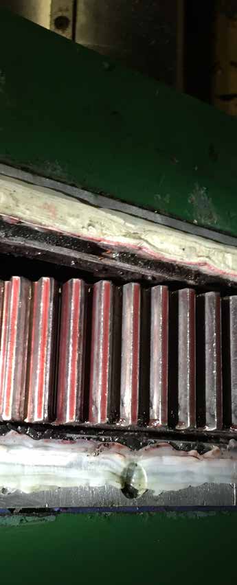 After the switch to Duolec 1605, the oil adhered much better to the gear than the previous lubricant. During inspection, the maintenance manager would see the red LE oil still on the gear.