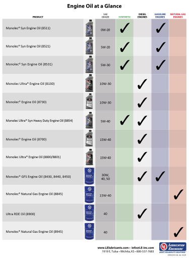 The technology exists to build high-performance engine oils that can withstand conditions and rigors for diesel trucks, passenger cars, light duty trucks and stationary engines. Typically, engine oils are made up of 70 to 90 percent base oil and 10 to 30 percent additives. Lubrication Engineers uses premium quality base oil and best-in-class additive technology to formulate engine oils that maintain their viscosity, keep engine wear to a minimum, and help ensure dependability. LE brand engine oils are formulated to meet the needs of our industrial customers and in most cases easily exceed the Automotive Performance Institute (API) specifications for motor oil performance. We have customers all over the world that use our engine oils and swear by their performance and ability to keep engines protected from wear and running at peak performance.